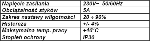 Higrostat stosowany jest do sterowania procesem załączania/wyłączania wentylatorów w zależności od stopnia wilgotności pomieszczenia. Elementem pomiarowym higrostatu jest najnowszej generacji włókno syntetyczne oraz precyzyjny układ mechaniczny. Pokrętło nastawy można zablokować przed dostępem osób trzecich. Zakres nastaw zawiera się w przedziale od 20% do 90%.