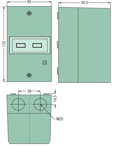 Wyłącznik silnikowy z zabezpieczeniem termicznym LMS-25 – rozmieszczenie otworów montażowych