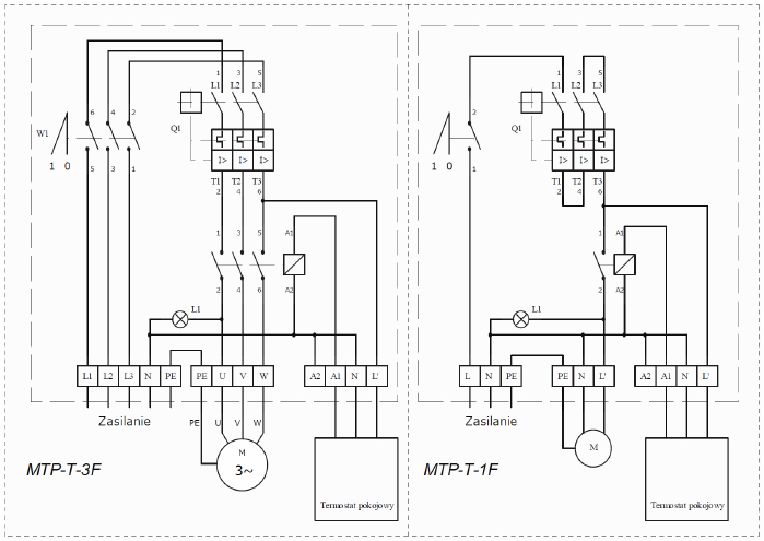 MTP-T-1F – automatyczny układ sterowania wentylacją w funkcji temperatury, przeznaczony dla wentylatorów z silnikiem jednofazowym.
