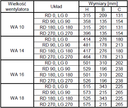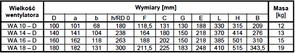 Wentylatory promieniowe typu WA przystosowane są do przetłaczania powietrza czystego lub zanieczyszczonego o maksymalnym stężeniu zapylenia do 0,3g/m3 i temperaturze +40ºC. Znajdują zastosowanie w instalacjach wentylacyjnych (nawiewnych lub wywiewnych) w przemyśle, rolnictwie, budownictwie, a także w różnych rodzajach obiektów użyteczności publicznej jak: laboratoria, magazyny, szpitale, szkoły, stołówki, baseny, oczyszczalnie ścieków itp. Wentylatory typu WA wykonane są z twardego PVC