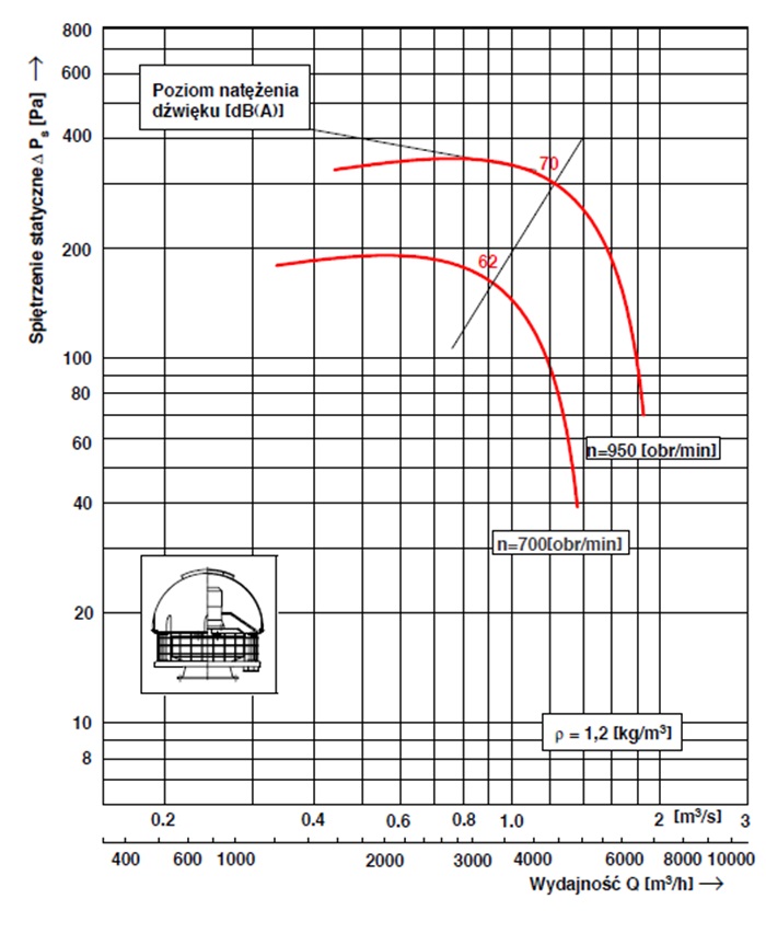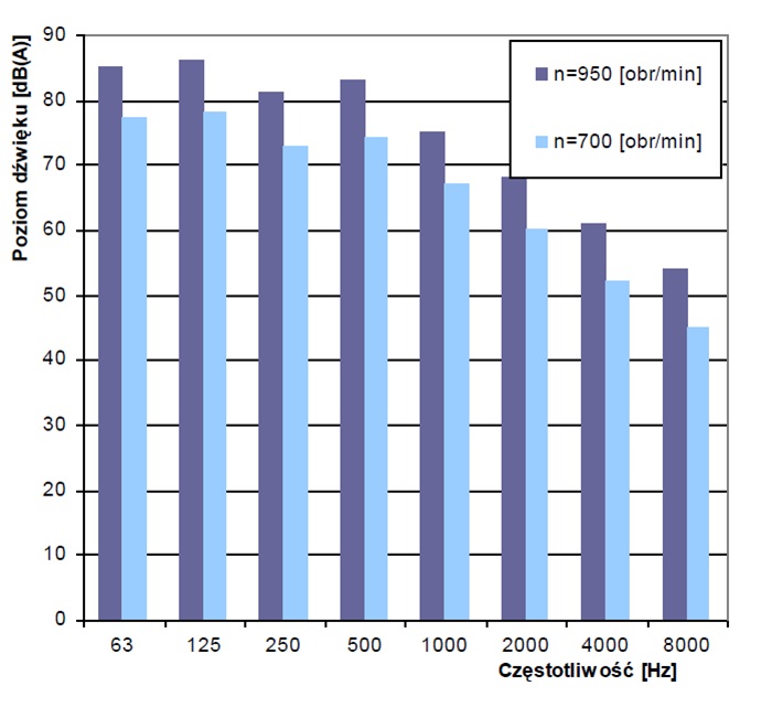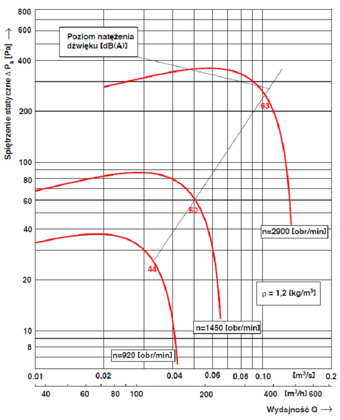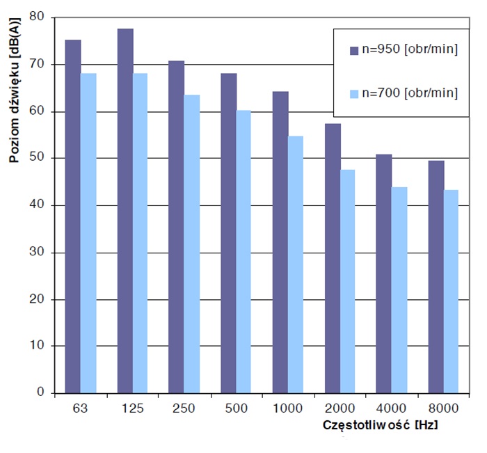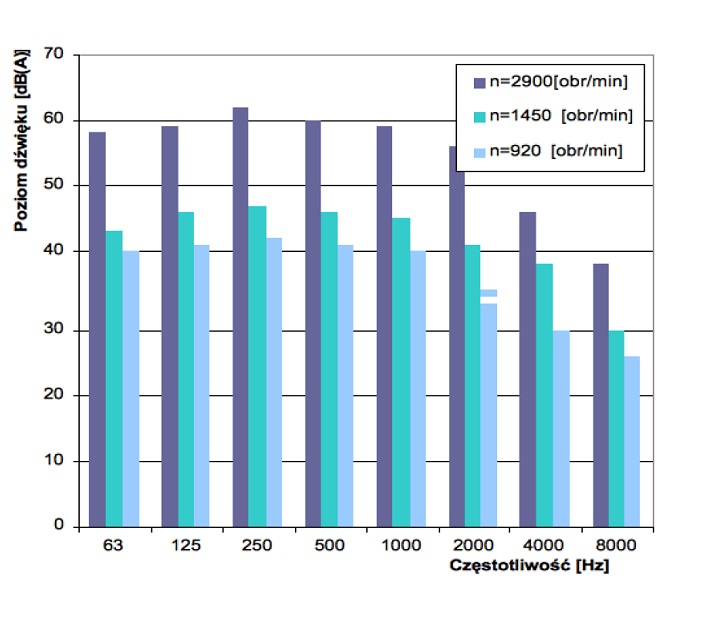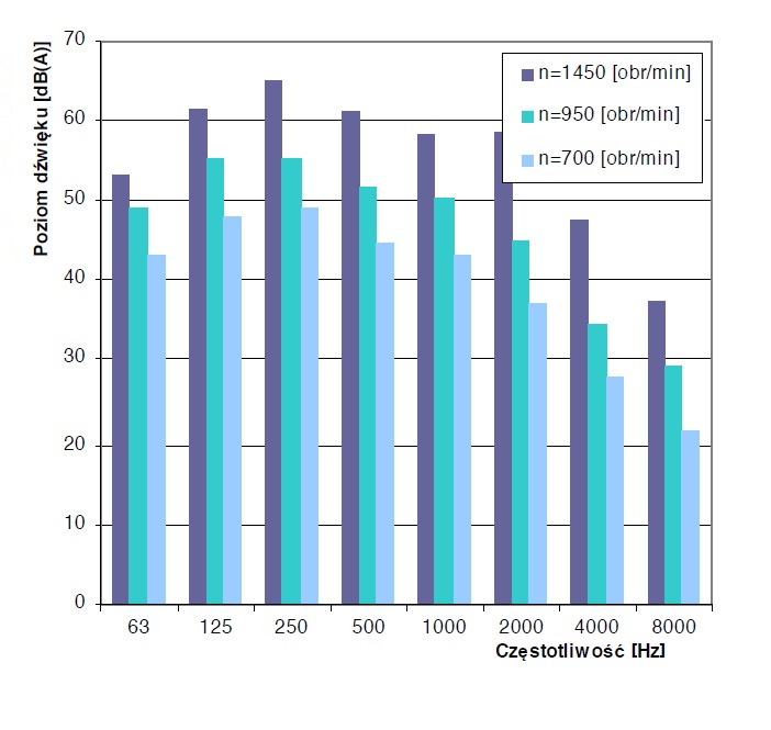 Poziomy dźwięku wentylatora WDc/s 16 – n dla poszczególnych częstotliwości