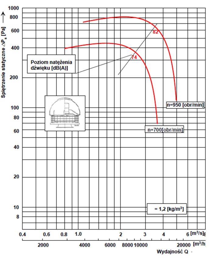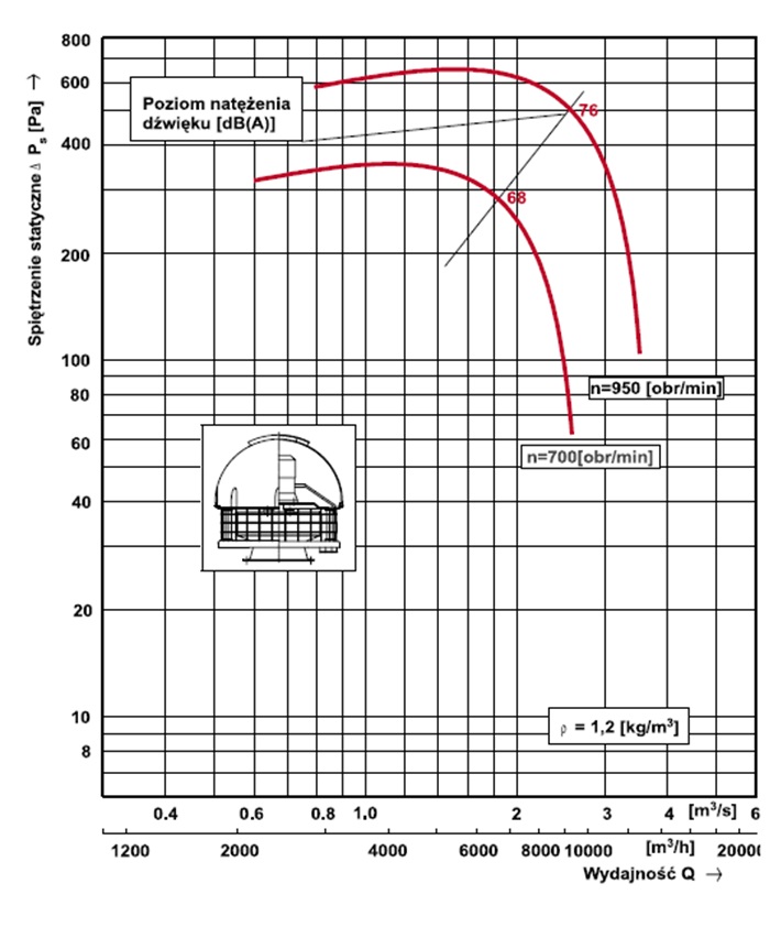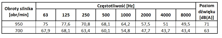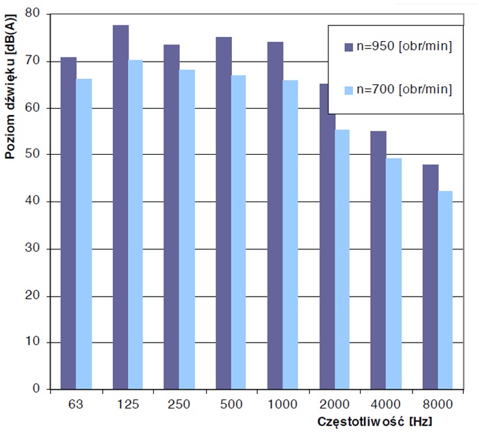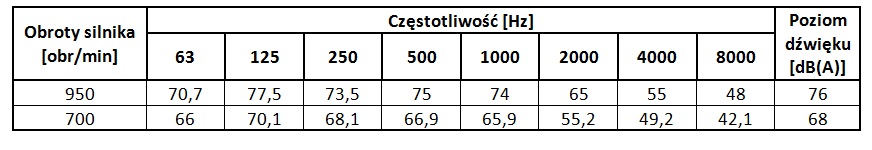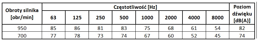 Poziomy dźwięku wentylatora WDc/s 20 dla poszczególnych częstotliwości