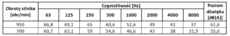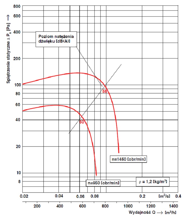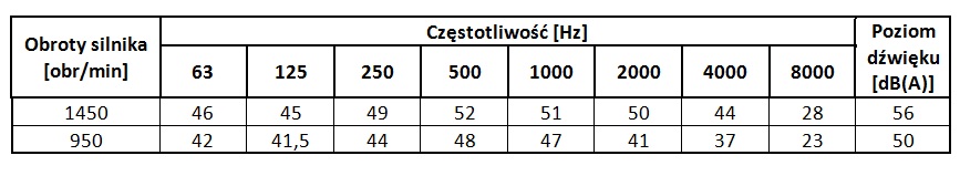 Poziomy dźwięku wentylatora WDc/s 56 dla poszczególnych częstotliwości