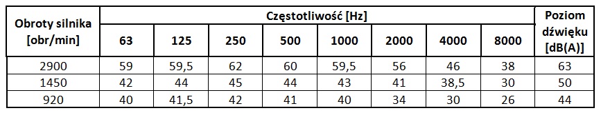Poziomy dźwięku wentylatora WDc/s 40 dla poszczególnych częstotliwości