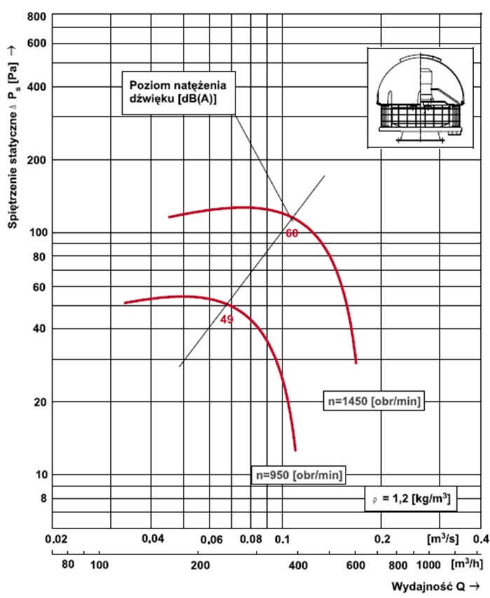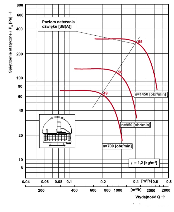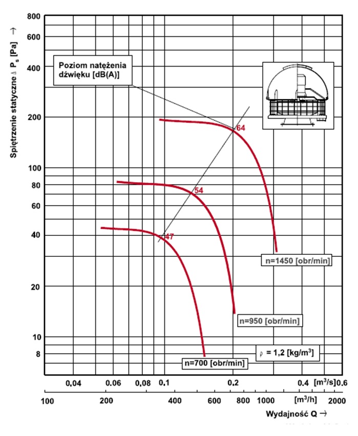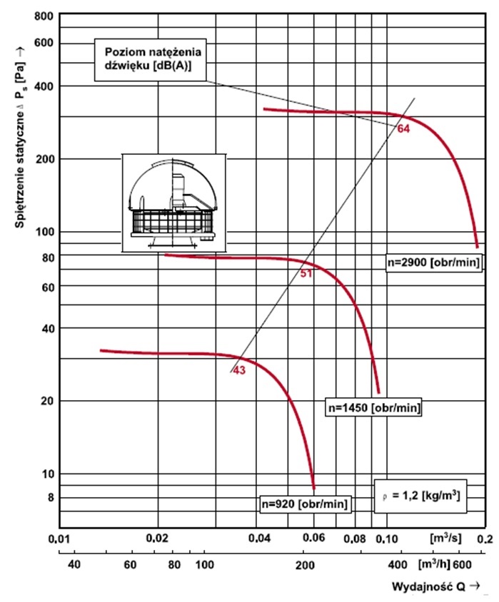 Zastosowanie osłon nie zmienia charakterystyk przepływowych zastosowanych wentylatorów.