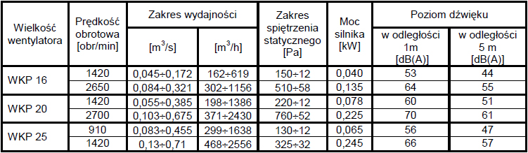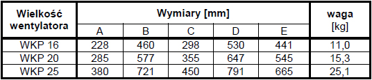 Wentylator standardowy typu WKP wyposażony jest w silnik jednofazowy typu zewnętrznego z kondensatorami pracy o stopniu ochrony IP 44 i klasy izolacji F